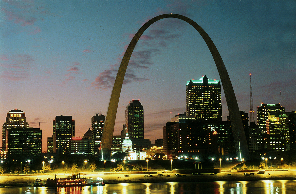 The Gateway Arch is perhaps Missouri’s most iconic and recognizable structure. In the 1930s, St. Louis officials developed the Jefferson National Expansion Memorial Association intended to revitalize the riverfront and increase tourism in the city. After a decade of research and fundraising, they opened a public design competition with the goal of erecting a monument to western expansion. St. Louis was near the site of the 1804 Lewis and Clark Expedition launch, and the city later served as a gathering place for pioneers collecting supplies for trips to the American West, earning the city the nickname “Gateway to the West.”